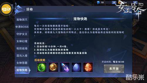 你可以一路跟随参赛选手,但是不要尝试给它们打气,因为这会让你看起来显得相当愚蠢,毕竟它们根本不知道你在说些什么!《女王号令》之中的“宠物快跑”活动玩法,会在每日的18:00开启,赛事将会持续15分钟,一共举行4场。而在比赛开始之后,就只能看被选中的宠物的表现了。