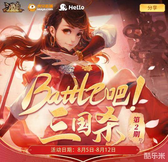 “Battle吧!三国杀”活动第二弹迅猛登场!Hello语音再度联合三国杀助力《Battle吧!校花》节目,为广大玩家送出丰厚福利。在8月5日~8月12日活动期间,参与活动,完成许愿或祈福任务赢取礼包奖励,有机会获得史诗将印宝箱、转生丹和武将葛玄、辛宪英等大礼!更能在线观看《Battle吧!校花》特别节目,参与话题讨论,助力打Call,赢取武将留赞、花鬘和鲍三娘!