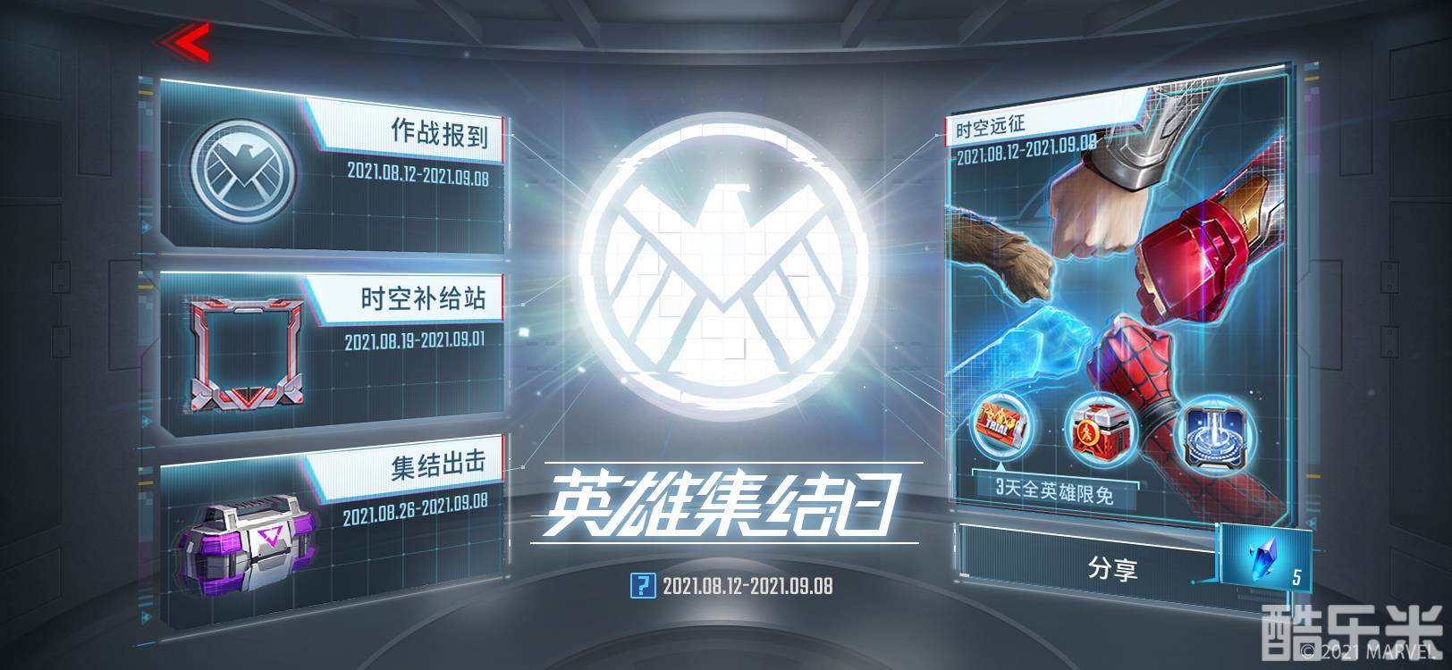 作战报到,累登7天领取丰厚物资;集结战场,完成每日任务获得备战物资箱,开箱即可获得英雄线索、无畏之石、金币等奖励;完成对局后可随机获得补给,同时也可以与好友相互赠送或索要,每凑齐并消耗完整一套补给即可兑换奖励,凑齐5次后还能获得限定奖励【2021英雄集结日头像框】!