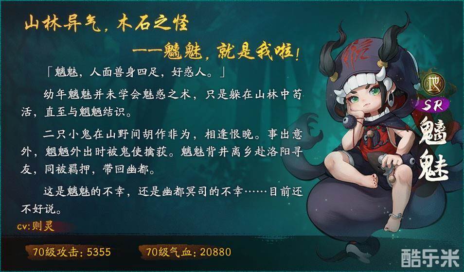 还未修习好魅惑术的魑魅,在作战时却是实力不俗。当魑魅在前排时,够让敌人进入睡意状态,出阵时则可以使敌人进入蜮祥状态,均可持续三十秒。敌人受处于睡意和蜮祥状态时,都会受到伤害加深的负面影响。所以带了魑魅出场时会发现敌人比平时皮脆很多。