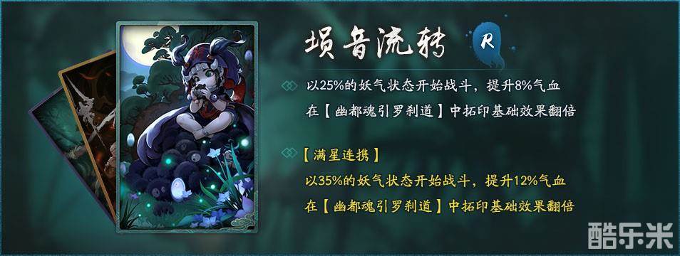 觉知丧失状态,为自身之外的气血比最低的妖灵万利大量生命值,同时还可提升自身攻击。3阶之后,牛头出场时会打开“三恶道”,为前排妖灵提升40秒的45%-60%的强克制伤害,护盾及其他增益效果也会大幅提升。