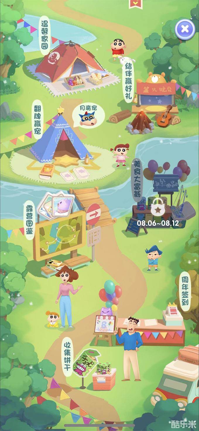 随着《天天爱消除》×蜡笔小新定制版本的上线,游戏八周年庆典——露营派对活动也已经全面开放。玩家进入游戏后,将进入到一个由帐篷、篝火、房车等元素组成的全新场景界面。小新和他的家人美伢、广志以及朋友风间彻、妮妮,准备了超多精彩活动,等候着大家前来开启夏日露营派对。