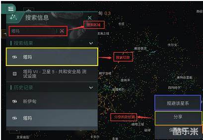 3、黄色图标为避开星系列表。