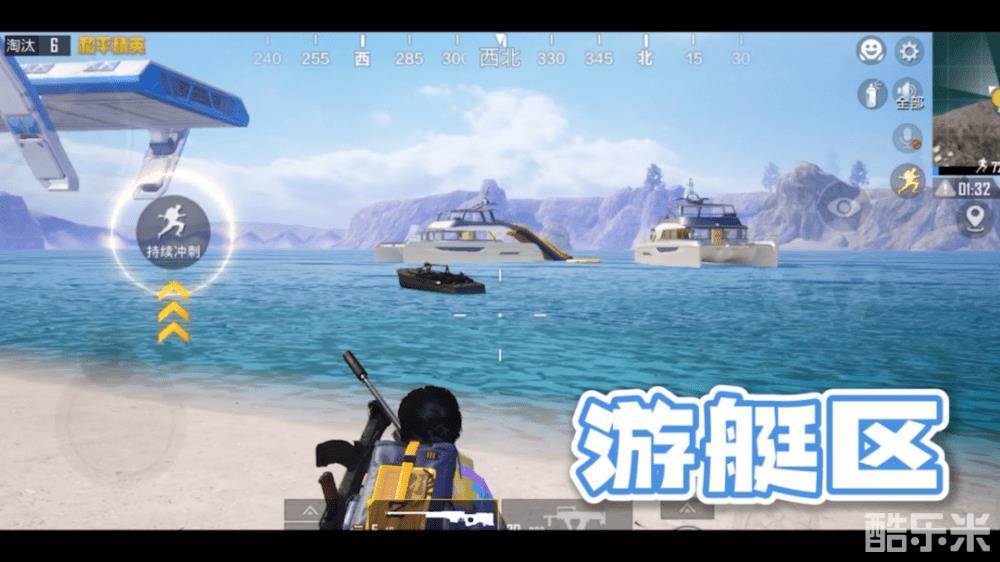 在海上会固定驻留几艘游艇,这里的游艇是不能开的,但有滑滑梯、水上蹦床和钓鱼可互动,通过钓鱼可以获得物资奖励,在附近还会固定刷新冲浪板跟反重力摩托