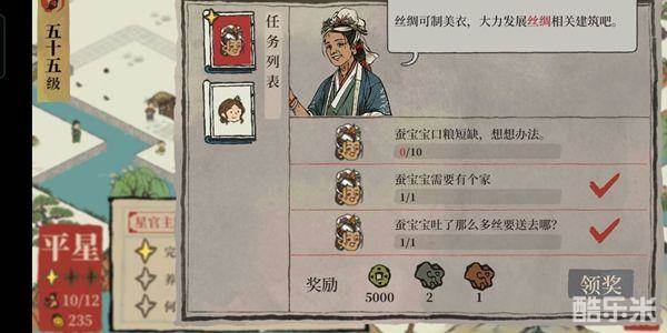 平星任务需要小伙伴们通过种植桑树、建造养蚕场,否则无法完成,具体如下: