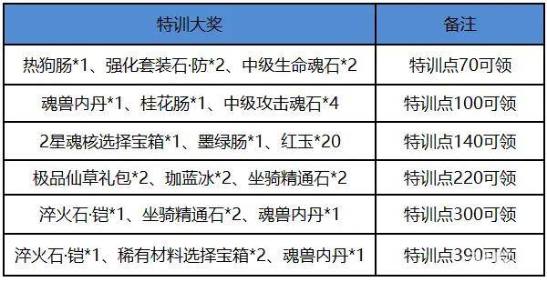 辛勤的训练总会获得回报,今天,完成指定特训任务也有奖励啦!达到每档奖励所需的特训点数,可领取对应奖励,领取奖励不消耗特训点。