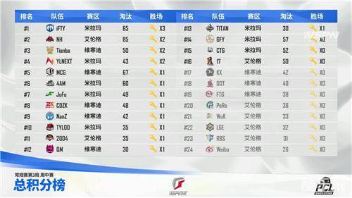 周中赛:iFTY战队获得头名,NH战队手感依旧火热