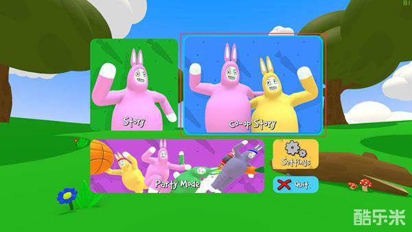 回到游戏菜单主界面,可以看到单人故事模式的右边有一个两只兔子的板块,这就是双人模式的入口,点击后就是双人模式了。