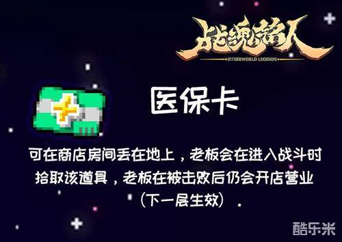 1、在战魂铭人游戏当中有很多的小道具,不同的道具有着不同的作用,游戏当中的医保卡道具主要是可以在商店房间里丢在地上,这时老板会进入战斗的时候去拾取该道具,在被击败之后老板仍会开店营业下一层会生效。