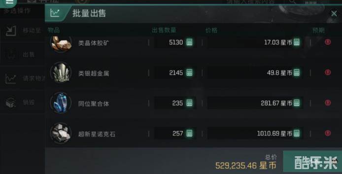 3、在卖矿的时候是需要花费很多功夫的,首先一定要对自己的实际需求有一个了解,这样才能够去销售对应的矿产,获得更多资源。如果说星际路途里面不安全或者是卖的矿物产量过多,那么就可以选择星域速送。就是在仓库点击对应的矿场弹出对话框,就能找到这个功能了,但是使用这项功能也需要付出一些代价。
