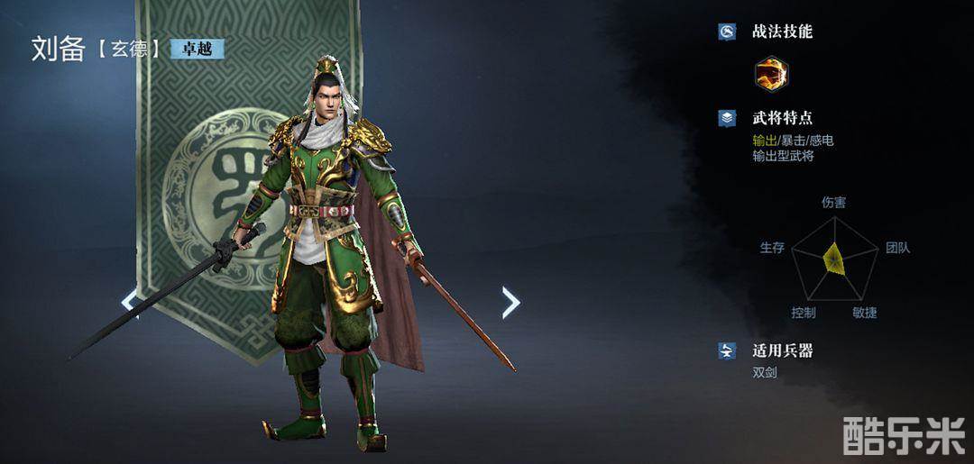 刘备的擅长兵器是双剑,以给敌人造成高额输出为角色的特点。在装备等级方面根据武器的种类,对于专属兵器双晴在一级即可使用,黄龙双牙则需要三十级,阴阳双裂更是高达六十级。因此也可以看出专属兵器无疑是刘备最适合使用的武器,根据刘备的等级能装备对应的专属兵器就是最好的选择。
