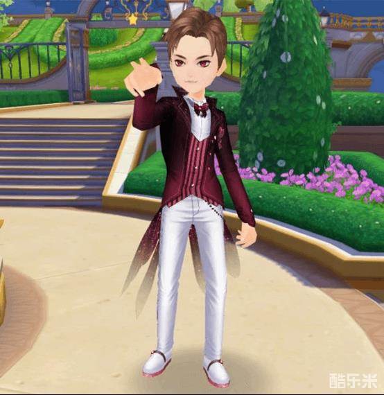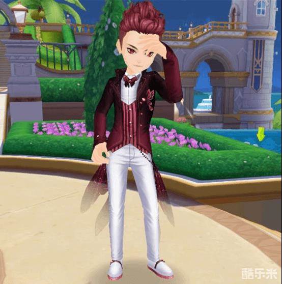 独特设计的燕尾服与蝴蝶造型相结合,犹如幽幽赤蝶翩翩起舞、振翅飞翔,这也是服装的特点之一。