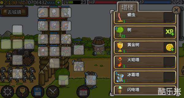 加经验的,满级21级,有两个进化方向。进化方向一,钻石树(虽然实际是水晶树,但是我喜欢管那个蓝蓝的东西叫钻石有意见?w)吸收死去的怪物灵魂并结出钻石果实,大约2~3波给一颗钻石。进化方向二,金币树。这一次死去的怪物灵魂被树结出了金币,总有一种死灵魔法的奇异错觉。另外这两种进化附带的技能都只在正常推波模式下生效。