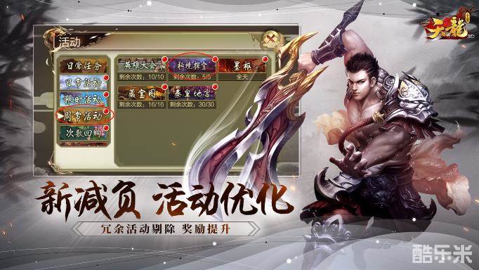 新玩法镇派之宝火热临世,战力再飙升带来新风暴;宝石收集狂增福利,战力特效丰厚属性等你来拿;天龙神翼史诗级优化,让你在江湖中傲立群雄;活动优化减负,提成你的游戏体验!