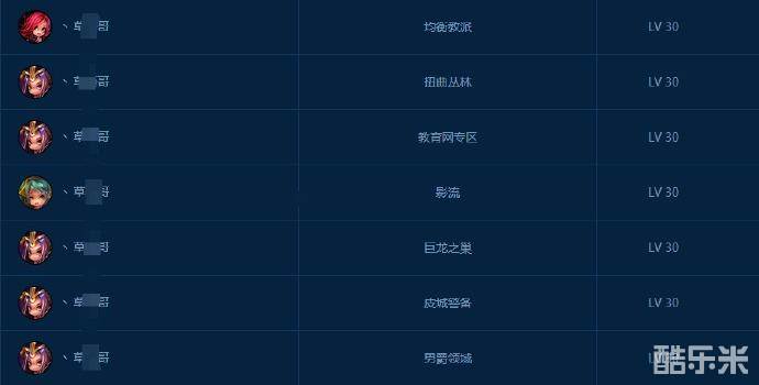如图所示,这位大神的足迹遍布国服各个服务器,无论是最新开放的男爵领域还是鲜为人知的教育网专区,他全部建了角色,并且玩到了30级。