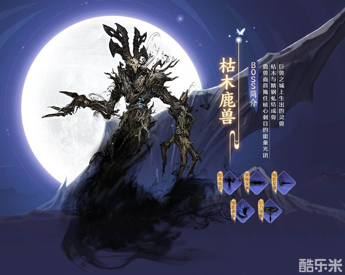不光如此,它还拥有多种能力:枯木吸灵、哭嚎深渊、暗影星锥、暗影袭杀和巨力强推,通过文字描述,便可以看出既有远程攻击又有近身攻击,还有群攻技能,看来这次逆粉们又有新的难度挑战了。