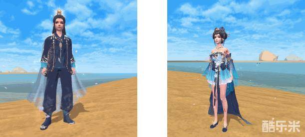 女生长发盘起,佩戴金贵精致的发饰,青蓝通透的花饰坠于腰间,身后半透轻纱长摆,好似夜空的星辰皆散落于衣上,华丽唯美。