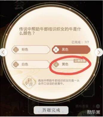 2、传说中帮助牛郎结识织女的牛是什么颜色?
