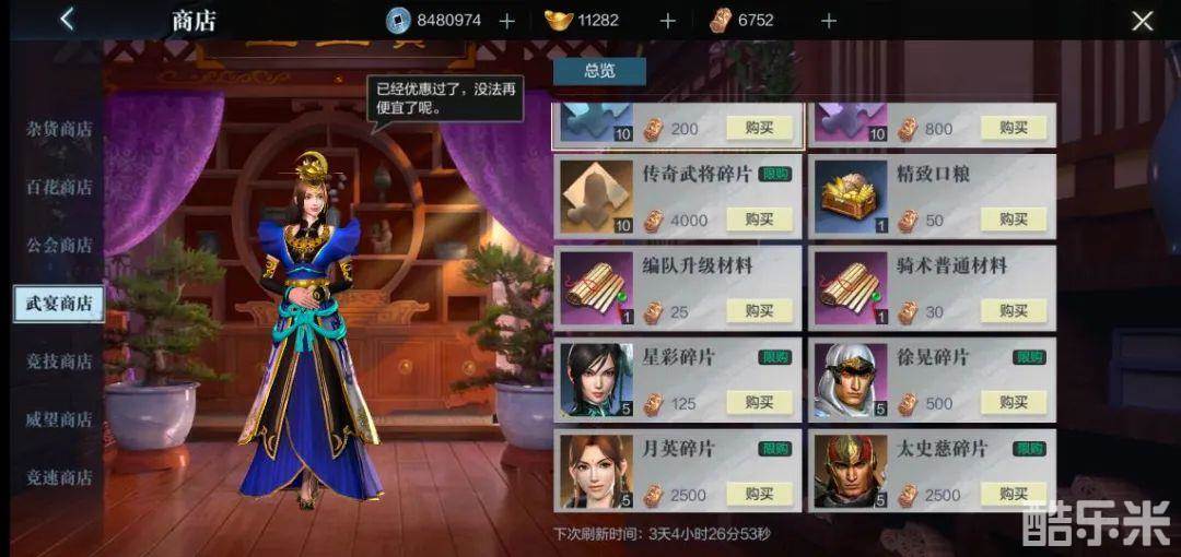 除了段位奖励外,挑战对手可获得铜雀币,可在武宴商店购买武将碎片以及各种基础材料。另外小霸王们不要忘了配置防守阵容,用于防守的武将建议选择通用性比较强的阵容,而进攻乌江镇阵容则可以根据对手的阵容进行一定的调整,更容易获得战斗的胜利。