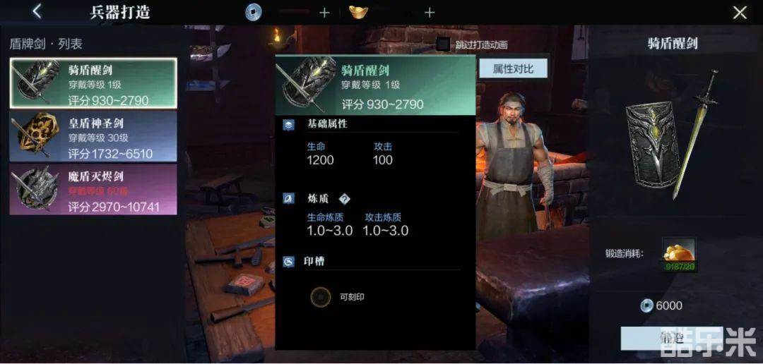 盾牌剑(骑盾醒剑、皇盾神圣剑、魔盾灭烬剑),穿戴等级分别为1级、30级、60级。
