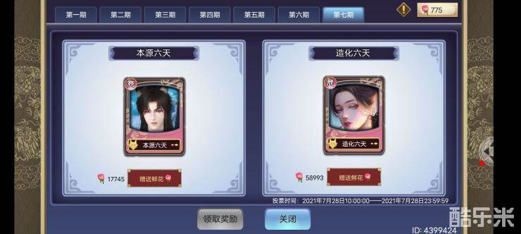 4、目前造化六天的票数远远高于本源六天,可见,本游戏男玩家比女玩家多。