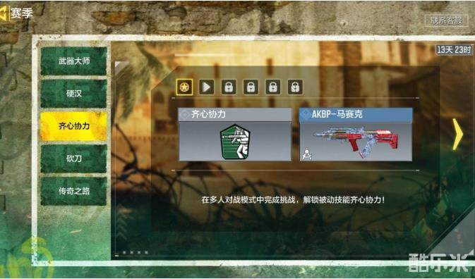 齐心协力可以在8月13日登陆战场的新赛季任务里获得,完成赛季要求的多人对战任务就可以了。