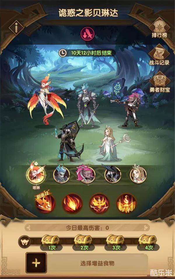 Tips:平民玩家不追高伤害,其实可以只上一个英雄消耗8食物,打4次拿宝箱奖励即可。