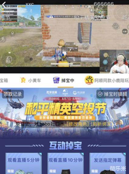 首先在dy直播里面找到和平精英板块,可以看到这种显示掉宝的直播(下图所示),“掉宝中”;