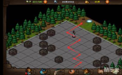 此时需要破解珍珑棋局才能通过山中广场这个场景。珍珑棋局上的棋子就是我们平时玩的象棋上的棋子,只要角色避开所对应的棋子的攻击路线就可以了。首先如下图箭头所指的位置进行移动。