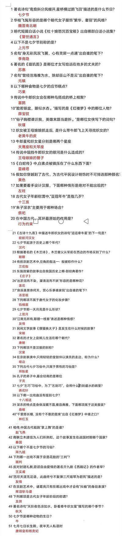 1、七夕答题活动答案就如下面图示内容,大家根据题目对号入座,就知道正确答案了。