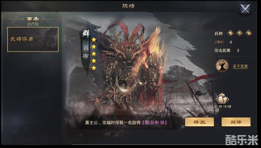 除此之外,俘虏特定武将的条件也被放宽,玩家即便攻占非司隶的城池,也有一定可能获得强悍的“吕布”与“董卓”。