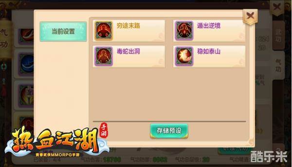 3、毒蛇出动:受到伤害时有一定几率减免(自身最大气血*3.5%)的伤害受气功等级影响PVP必备