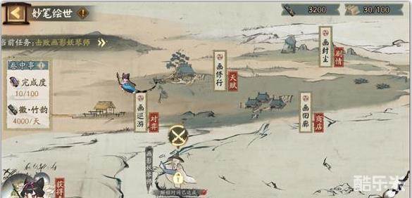 玩家可通过绘画(在画卷中增加「妖怪」和「景观」元素)将画卷完成度提升至上限,上限后可解锁当前区域的画影挑战,挑战成功后解锁新区域。