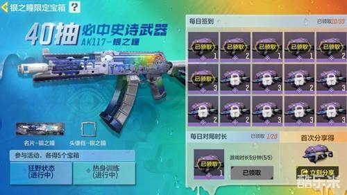 打开宝箱即有机会领取史诗级武器蓝图AK117-银之瞳、名片-银之瞳及头像框-银之瞳等限定好礼!瘦普悄悄打听过,这次的银之瞳宝箱依旧是40抽必中AK117-银之瞳哦~
