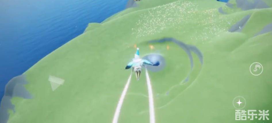 2、然后在瀑布旁边的喷泉有个先祖,我们先把空中光标全部收集;