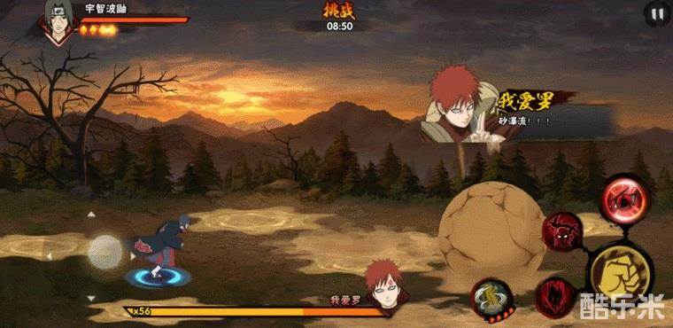 击败勘九郎就要面对boss风影我爱罗。本场战斗分为三个阶段,第一阶段地面会出现砂之陷阱,我爱罗没有特殊攻击手段,打掉一定血量即可进入第二阶段。