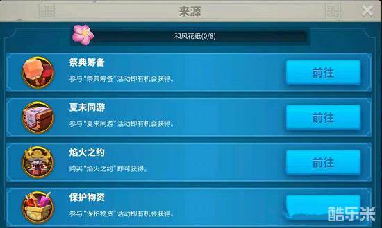 通过这五个活动都可以获得。祭典筹备!