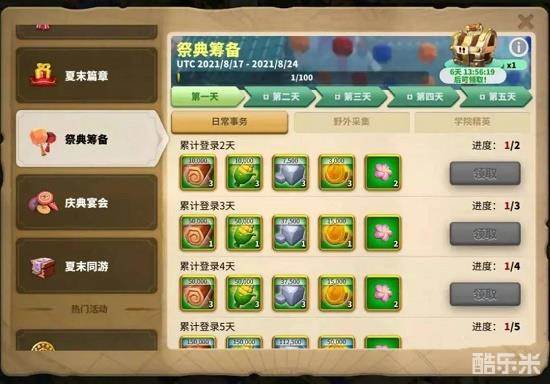 常规的五日活动。完成后还可以获得大量的加速和紫色雕像。