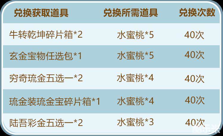 夏末狂欢!少年们累计充值达到指定金额,即可领取水蜜桃!水蜜桃可在限时活动中兑换各种稀有玄金资源!