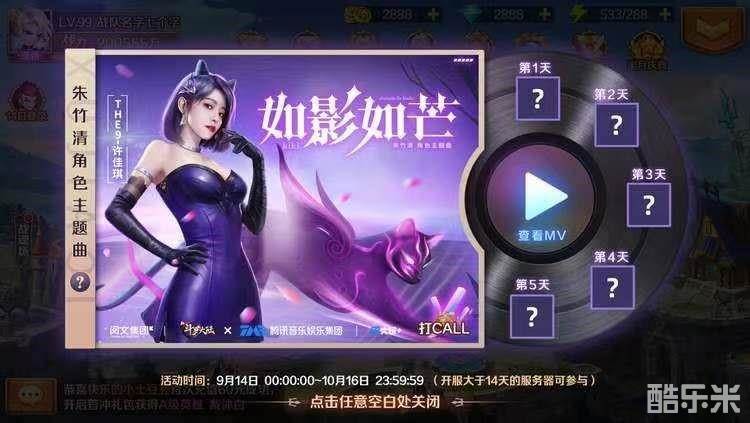这次我们与偶像歌手许佳琪合作,推出了朱竹清的主题曲《如影如芒》。在此期间,我们推出了登录福利活动,各位魂师大人只要在活动期间进行登录,便能领取各种丰厚奖励。此外,活动期间每日进行打CALL,还能获得钻石和周年福袋(内含丰厚奖励)。