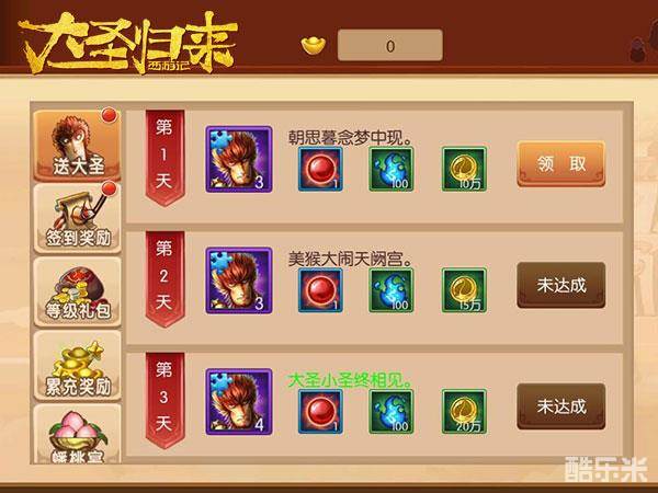 在《大圣归来手游》中,签到每月重置一次,更换不同的奖励内容。因此,玩家每天一定要记得按时签到,以免错过奖励。现在就进入《大圣归来手游》,领取属于您的福利吧!关注我们,更多《大圣归来手游》资讯,随后即将为各位倾情奉上!咱们下期再见。