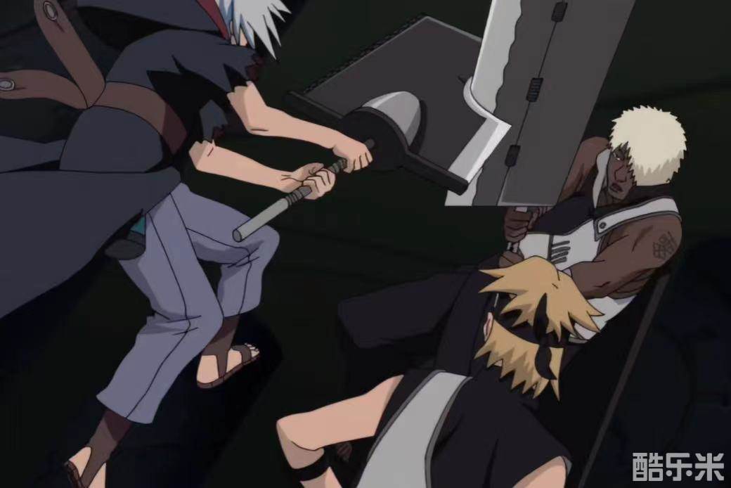 危急关头,水月也跑了出来,和重吾一起分别挡下了两个人的攻击,但是奈何这雷影的力气太大了,本来这斩首大刀在上次和奇拉比战斗的时候,就已经弄出了一个缺口,现在面对雷影的这一击,直接就被雷影给干断了,随后希就感知下,这佐助还有没有其他的队员,这一会跳出来一个谁接受的了,这时重吾也就发现了,他是感知型的忍者身份,随即就变身要先解决掉希,雷影看见重吾变身后这狂妄的样子气得不行,跳过去就给重吾干到了墙上,与此同时,水月则向希发起了攻击,但是却被达鲁伊给挡了下来,于是两人就开始拼起了大刀,烟雾过后,只见重吾的胳膊化出了一个盾牌挡下了雷影的这一拳,但是他的力气还是比不过雷影,不一会重吾的嘴里就冒出了鲜血。