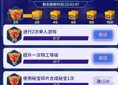 第二个方式可以通过每日任务以及每周任务来获得,每日任务玩法是比较简单的,而每周任务则是建立在每日任务之上的,任务的难度也不是很高。每周任务只是一个累计的要求,玩家按照要求来做任务就行了。达到任务要求之后,开启宝箱就可以获得钻石和一些道具的奖励,还是非常划算的。