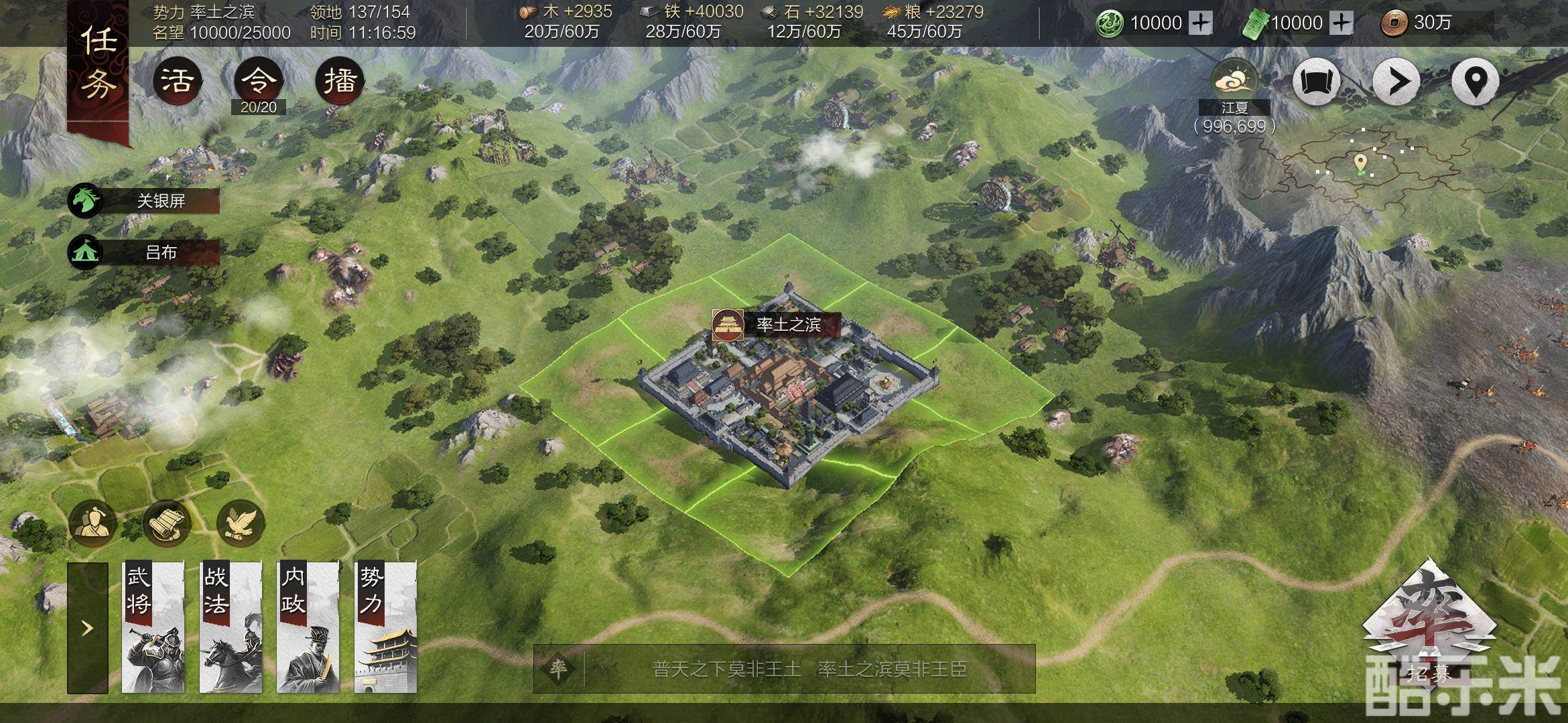 我们在本次的界面更新中,优化了界面布局,使得界面更加简洁高效易懂,信息阅读起来更加的直观,我们使用“红(战火)、黑(权谋)、白(礼政)”的颜色搭配来传递率土的世界观。我们希望用更简单的色调突出率土世界的场景、建筑、武将等内容,从而给主公们留下独属率土的印象。