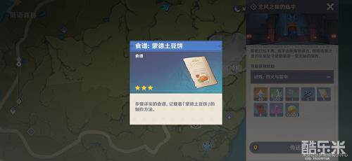 3、通关北方之狼的庙宇得到【食谱:蒙德土豆饼】