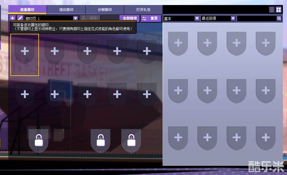可以额外激活相同背景色的徽印槽位