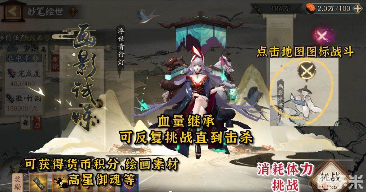 当前区域完成度达到100,即可参与【画影试炼】,时长3分钟。
