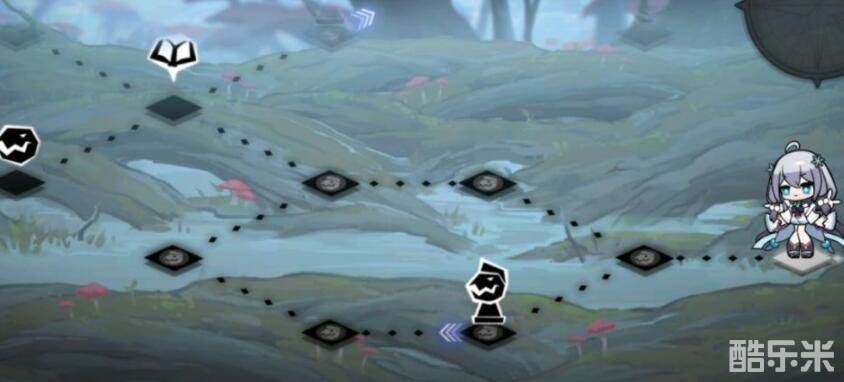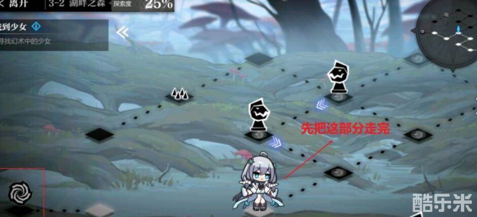 1.到达这里就会出现一个巡逻的小怪物,特点就是我们移动一步,怪物就会移动一步,而且怪物的移动是会显示方向的,我们躲避就可以,另外还能在怪物后面,那就有趣了;