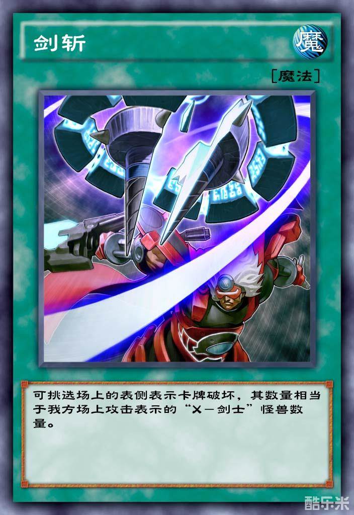 自己场上每有1张攻击表示的“X-剑士”怪兽,就破坏场上1张表侧表示的卡!这个效果不取对象!但可当心别破坏到自己哦。