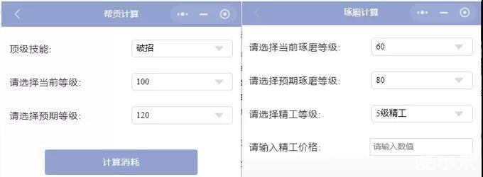 120是这个版本帮贡技能最高等级,同时破拆也已经已经提升到了120级。细心的小伙伴也已经发现了,最近百宝箱进行了一批更新,新增了【顶级帮贡技能计算】板块,方便少侠查询消耗。